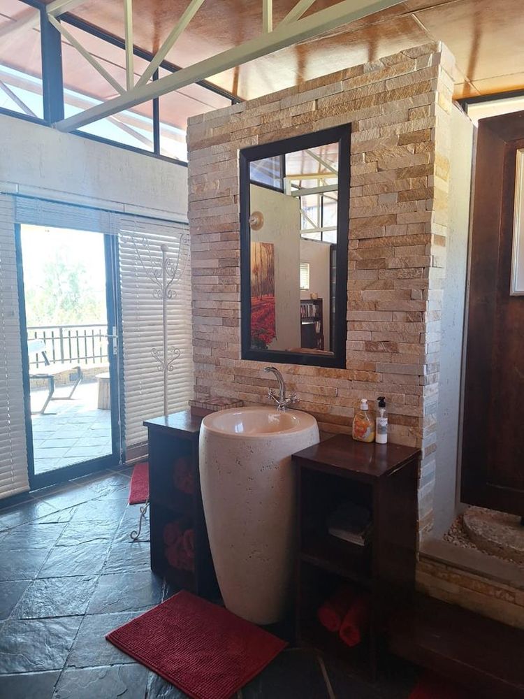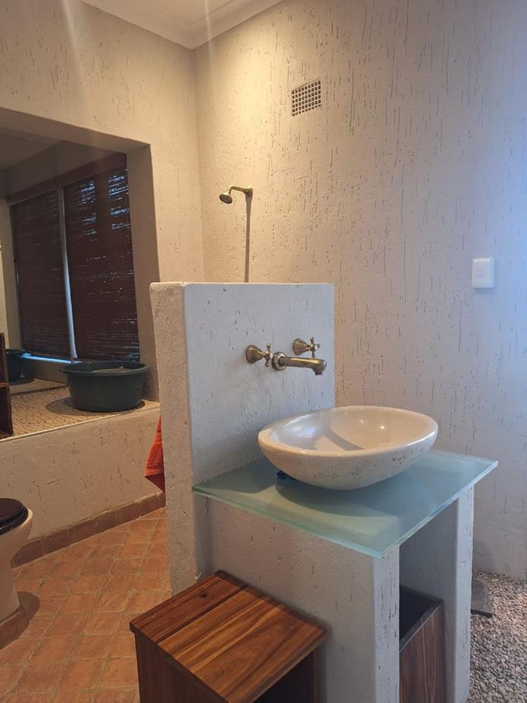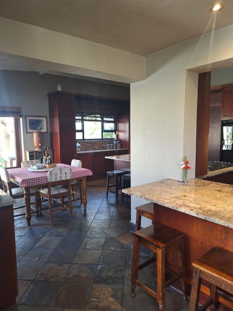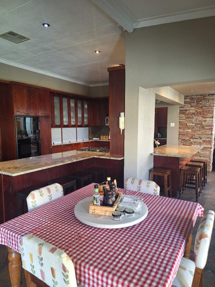 The main dwelling is an expansive 573 sqm, featuring a well-appointed lounge, dining room, and TV room. The kitchen is equipped with built-in cupboards (BIC) and built-in stove (BIS), complemented by a scullery for added convenience. Entertain guests in the spacious entertainment room or relax in one of the five generously sized bedrooms, each furnished with BIC. The home also boasts five modern bathrooms, ensuring comfort and privacy for all residents.