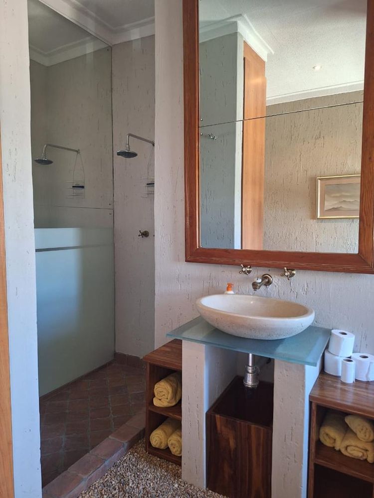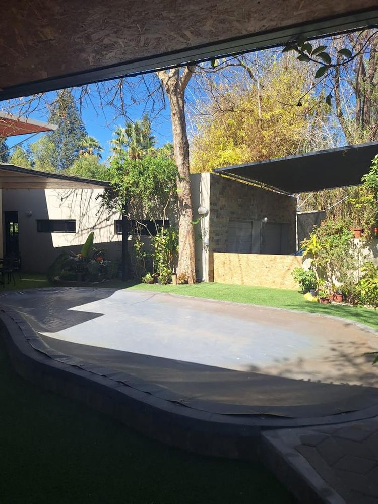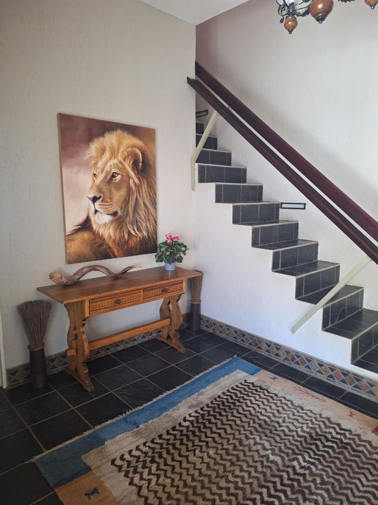 The property is further enhanced by practical features such as garages totaling 80 sqm, storerooms, a laundry room, and a sparkling swimming pool. Security is paramount with electrified boundary walls and an alarm system. Additional comforts include air conditioning and an off-grid solar electricity system with approximately four batteries, ensuring energy efficiency and sustainability.