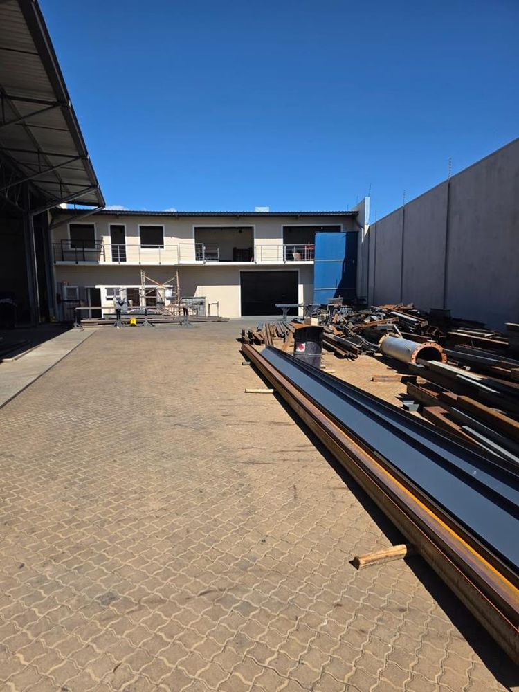 The ground floor is equally impressive, offering a variety of functional spaces. It includes a state-of-the-art spray booth and an additional kitchen. The workspace is complemented by separate male and female restrooms, ensuring convenience for all employees. The workshop area is ideal for hands-on projects, alongside a 'Draad Hok' and a dedicated tool store for equipment organization. Security is prioritized with an onsite safe, and there is an additional office space for administrative tasks. A welcoming reception area greets visitors, leading to a courtyard that provides a refreshing outdoor space. Parking is available, and the paved driveway ensures easy access to the premises.