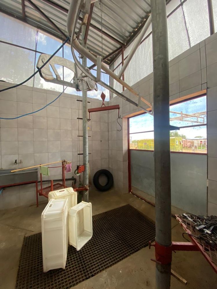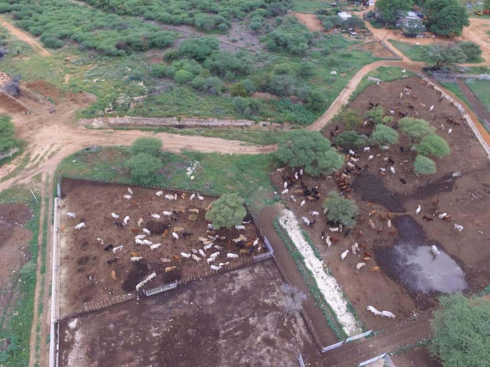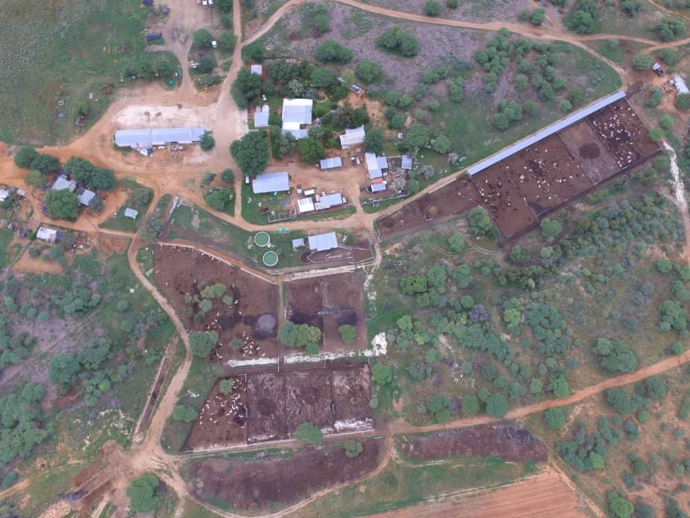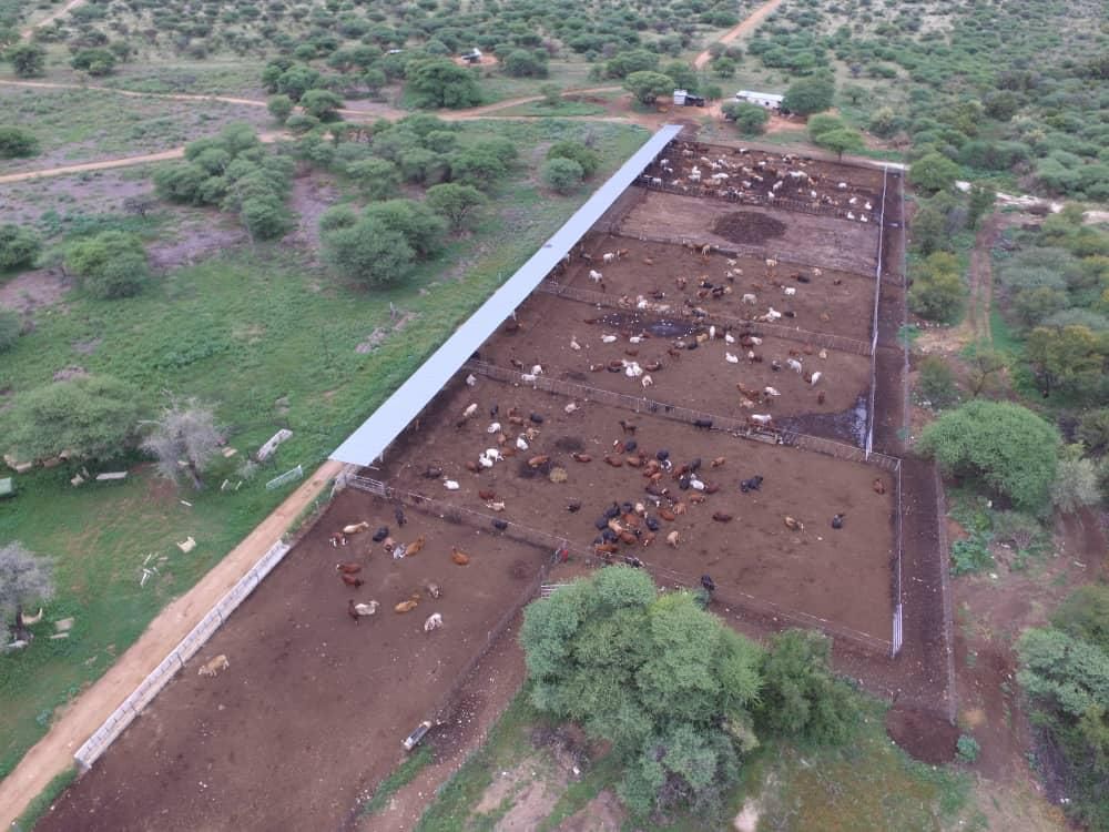 The feedlot is 475m2. Some covered feed cement trays. Every kraal has a water supply. Cattle handling facility is available. The feedlot can hold up to 2500 cattle standing.