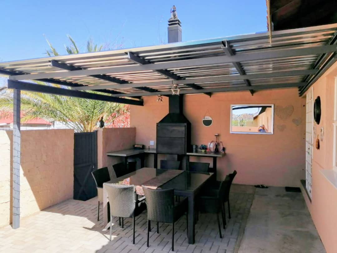 Step outside to find an undercover braai area, perfect for entertaining friends and family all year round. The small swimming pool is a delightful addition, offering a refreshing retreat during warm summer days.