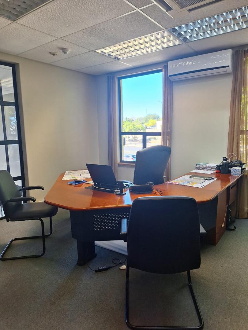 The first office space 430m2 on the first floor, includes a welcoming reception area, the CEO's office, four executive offices, a boardroom, a secure safe, eight smaller offices, two toilets, and a fully equipped kitchen.